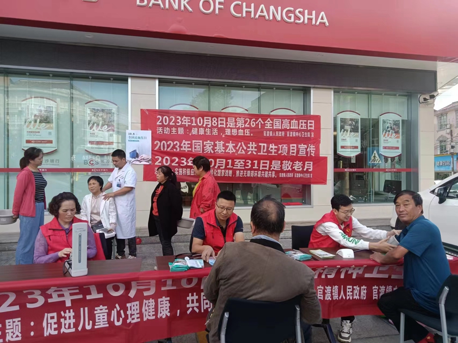 10月10日上午,我院6名党员志愿者在长沙银行门口进行高血压义诊志愿活动。