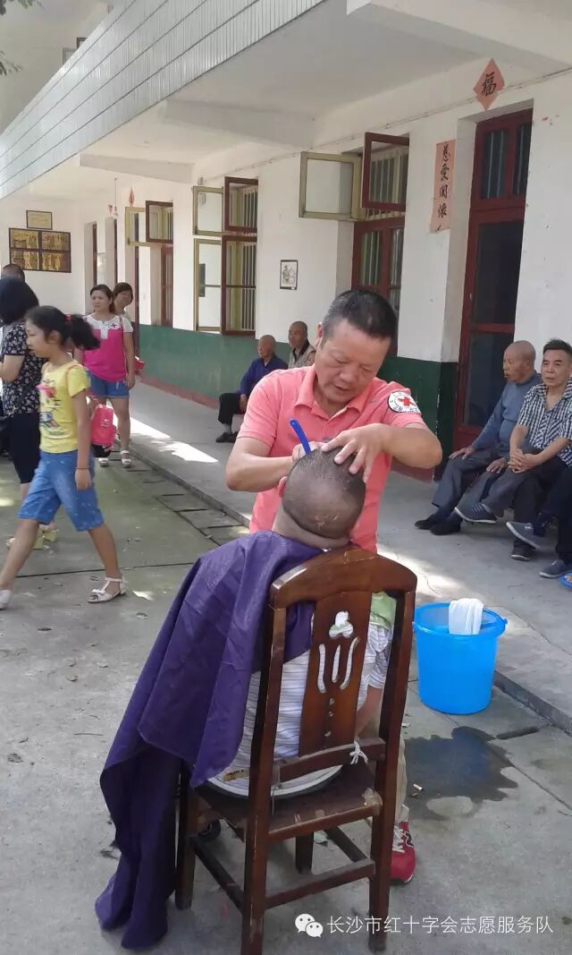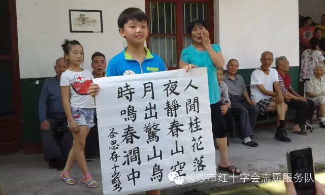 入驻该敬老院的老人不算多,没事的时候老人爱在院子里晒太阳,一下子来了这么多志愿者,院子里顿时热闹非凡。同行的志愿者彭师傅特意带来了理发工具,还没来得及歇口气,马上摆开架式给老人理起发来,同去的孩子们则在院子里开始为老人表演起自编自演的文艺节目,有街舞,诗词朗诵,书法表演,二胡,竖笛演奏,太极拳表演,广场舞表演,一个比一个精彩。于此同时大家为老人及院里工作人员每人送上了精心准备的清凉礼包,里面除了各种生活用品外,还有由绿色湘依公益项目提供的爱心物资。最后大家在院子里合影留念,老人们在快乐中感受着亲人般的关怀与温暖,所有人内心都充满喜悦。