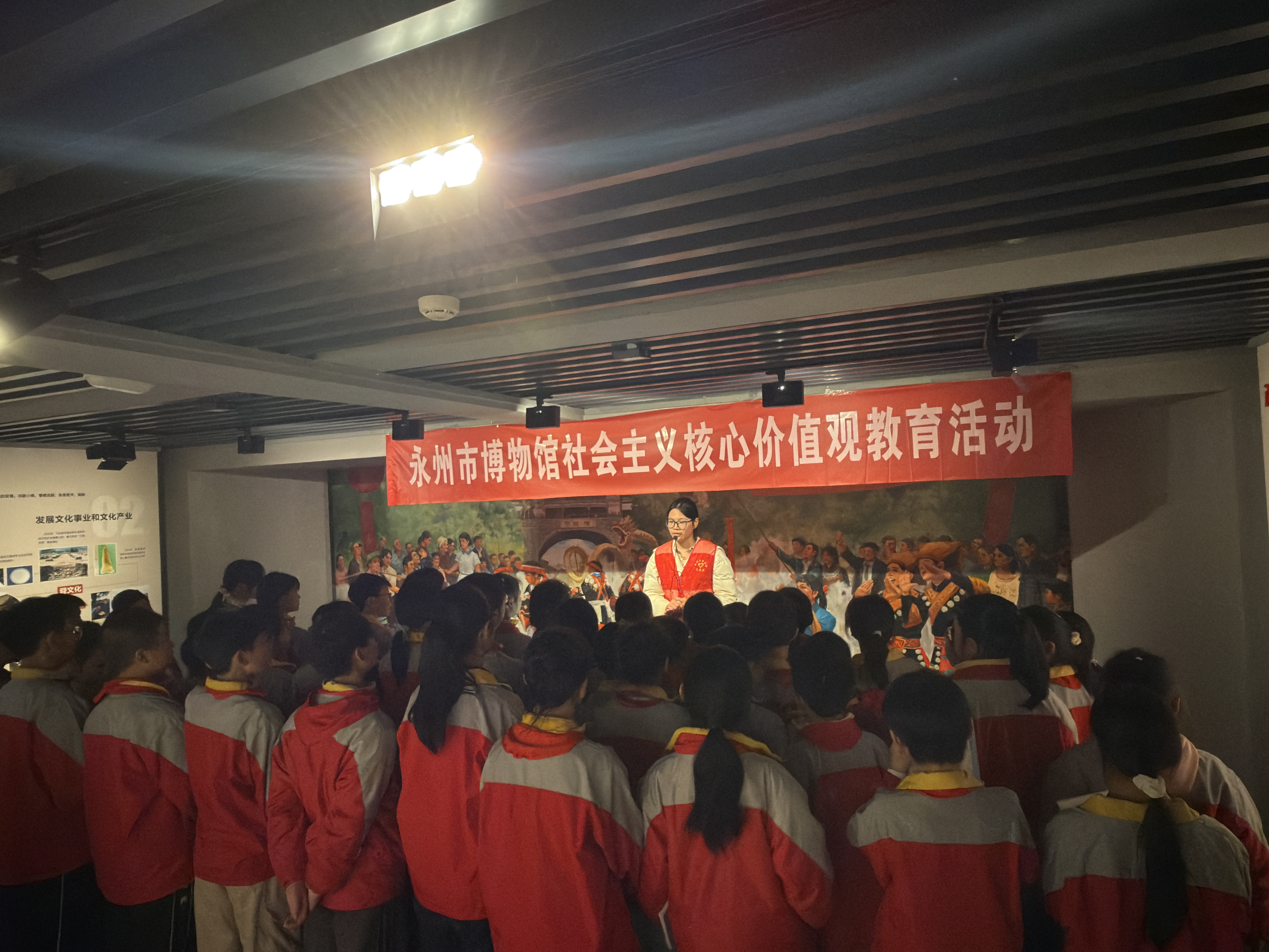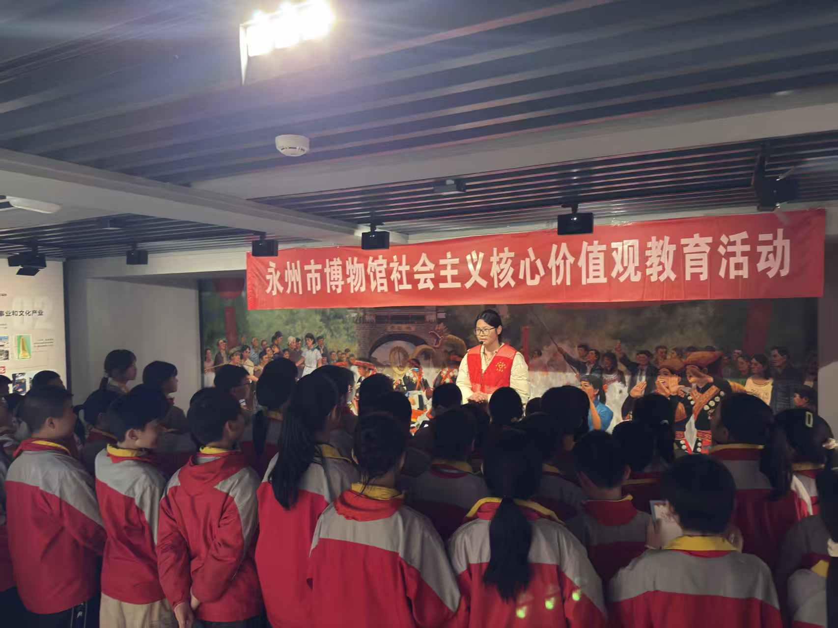 此次活动中,志愿者们结合永州市博物馆分管的党史军事陈列馆藏资源与永州本土历史文化,将社会主义核心价值观的内涵融入讲解的每一个细节。从永州革命先烈为家国抛头颅、洒热血的英勇事迹,到新时代永州儿女践行敬业、诚信、友善的动人故事;从千年古城的文脉传承,到当代永州的发展变迁,志愿者们用青少年易于理解、乐于接受的方式,让“富强、民主、文明、和谐,自由、平等、公正、法治,爱国、敬业、诚信、友善”的核心价值观不再是抽象的文字,而是可感可知、可学可做的精神指引。