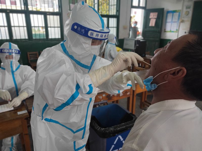8月4日上午6:40,我院5名志愿者携带防护物资到达普迹镇卫生院,经卫生院统一安排,他们立即下到采集点为群众进行核酸标本采集。炎热夏季,志愿者们与当地卫生院、政府、村干部积极配合,顾不上高温,严格按照防护要求落实个人防护,按照操作规范认真为群众采集标本,并劝导群众规范佩戴口罩,排队间隔1米以上,勤洗手。3天时间志愿者分别下到3个村,每天工作时长近10小时,累了就地休息,没有1人喊累退出,如期如质完成了分派的采集任务。紧要关头,志愿者们以奉献、友爱、互助、进步的精神为健康浏阳筑牢了一条坚固的防线。