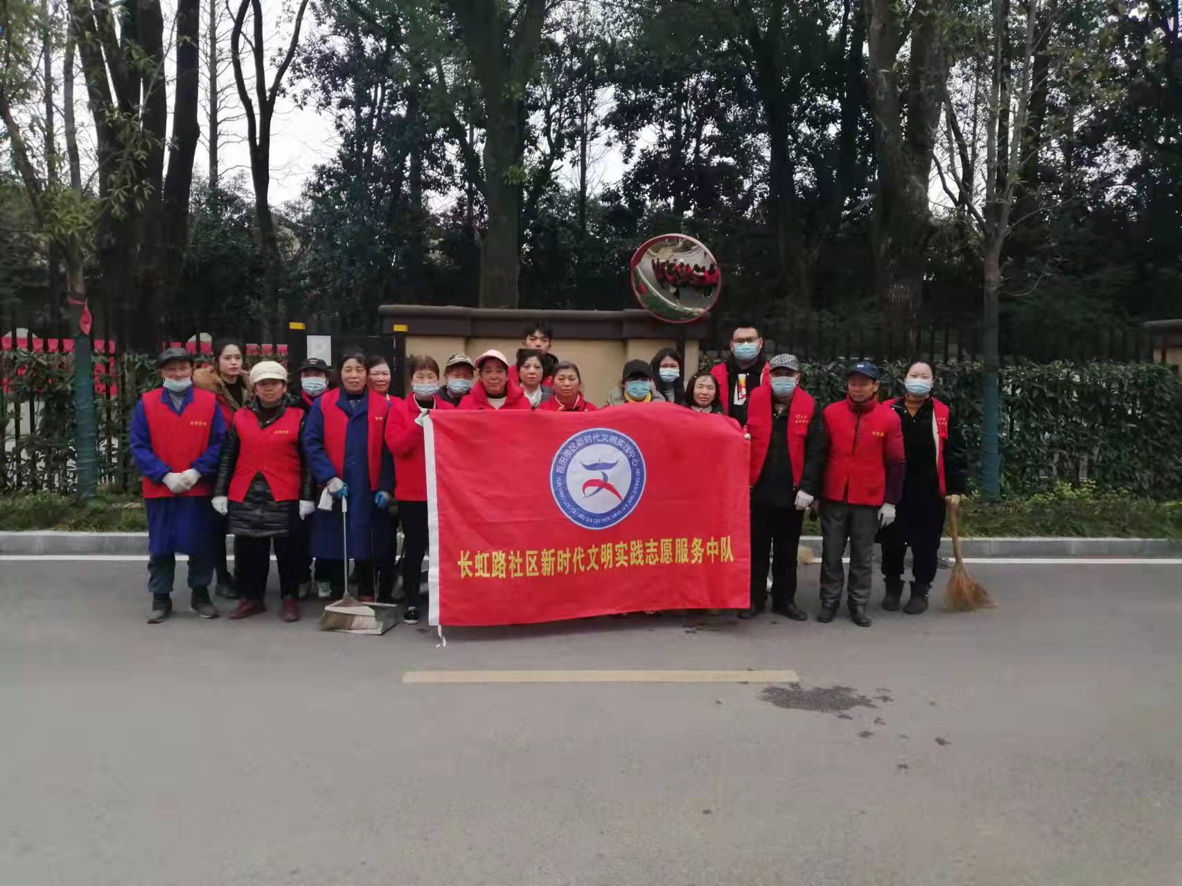2022年2月22日下午15:00,长虹路社区新时代文明实践站组织13名志愿者在宝德东堤湾开展以“打造绿色社区 共建和谐家园”为主题的绿化带清扫