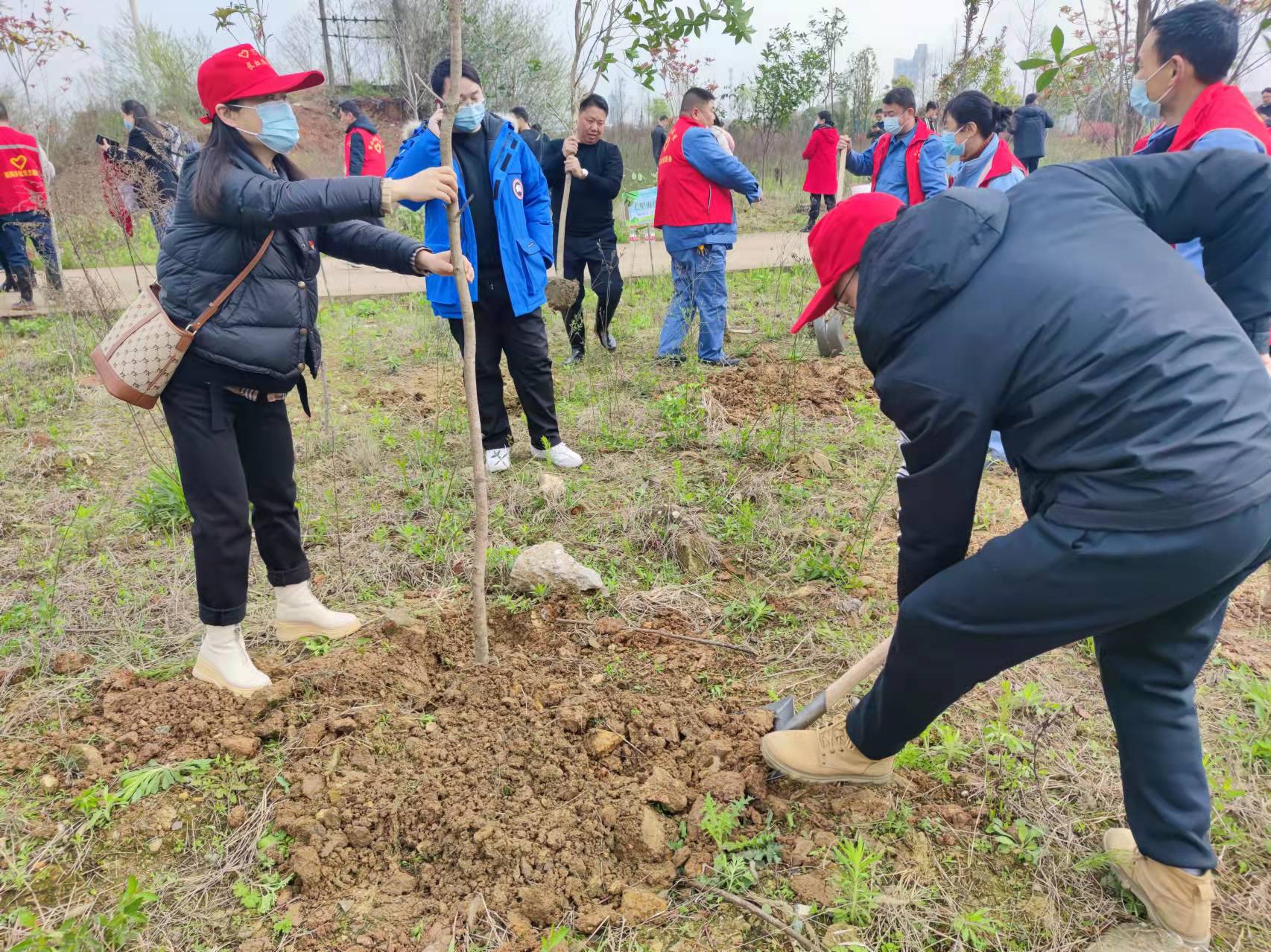 3月23日9:30,望岳路街道新时代文明实践所组织机关全体干部职工、社区志愿者、辖区人大代表共100余人,长虹路社区新时代文明实践站志愿者11人来到栖风亭社区凉亭山砖厂开展以“爱我望岳 维护优良生态环境”为主题的植树节活动,掀起了全民义务植树活动热潮。在活动现场,大家踩着泥泞,有的挥锹挖坑、有的扶树填土、有的培土浇水,大家齐心协力,植入一株株树苗,忙得不亦可乎。经过两个小时的忙碌,500余株桂花树、香樟树在凉亭山约5亩荒地上安家落户