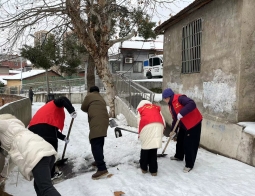 南津港社区新时代文明实践站开展“铲冰除雪 疏通道路”志愿服务活动